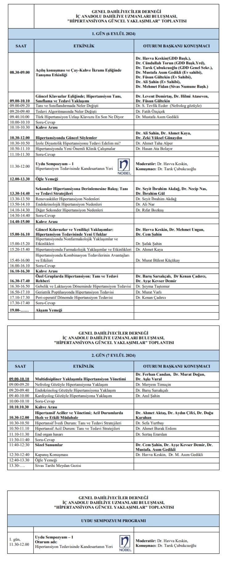 6-7 Eylül 2024 tarihlerinde Sivas Cumhuriyet Üniversitesi 4 Eylül Kongre Merkezi’nde düzenleyeceğimiz İç Anadolu Dahiliye Uzmanları Buluşmasında ‘Hipertansiyona Güncel Yaklaşımlar’ konulu etkinliğimizde siz değerli meslektaşlarımızı bekliyoruz.